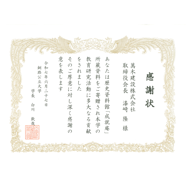 歴史資料館「成就庵」閉館に伴い、所蔵しておりました蔵書2758冊を釧路公立大学に寄贈いたしました。