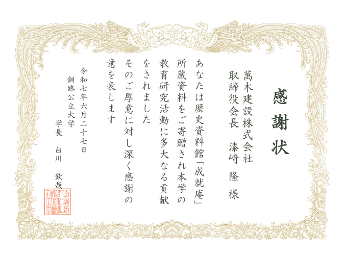 歴史資料館「成就庵」閉館に伴い、所蔵しておりました蔵書2758冊を釧路公立大学に寄贈いたしました。