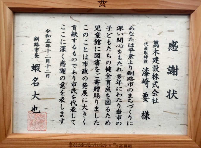 1987年美原児童センター開館記念から、児童図書の寄贈を開始しました。現在では、市内の児童館など23施設に分配され、「萬木文庫」として児童図書が設置されています。