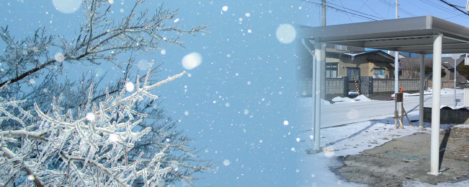 北海道の厳しい気候条件 雪・雨・太陽からあなたの愛車を守ります。萬木建設がお勧めする北海道仕様・本格的耐雪タイプ・雪降ろし不要のカーポート。